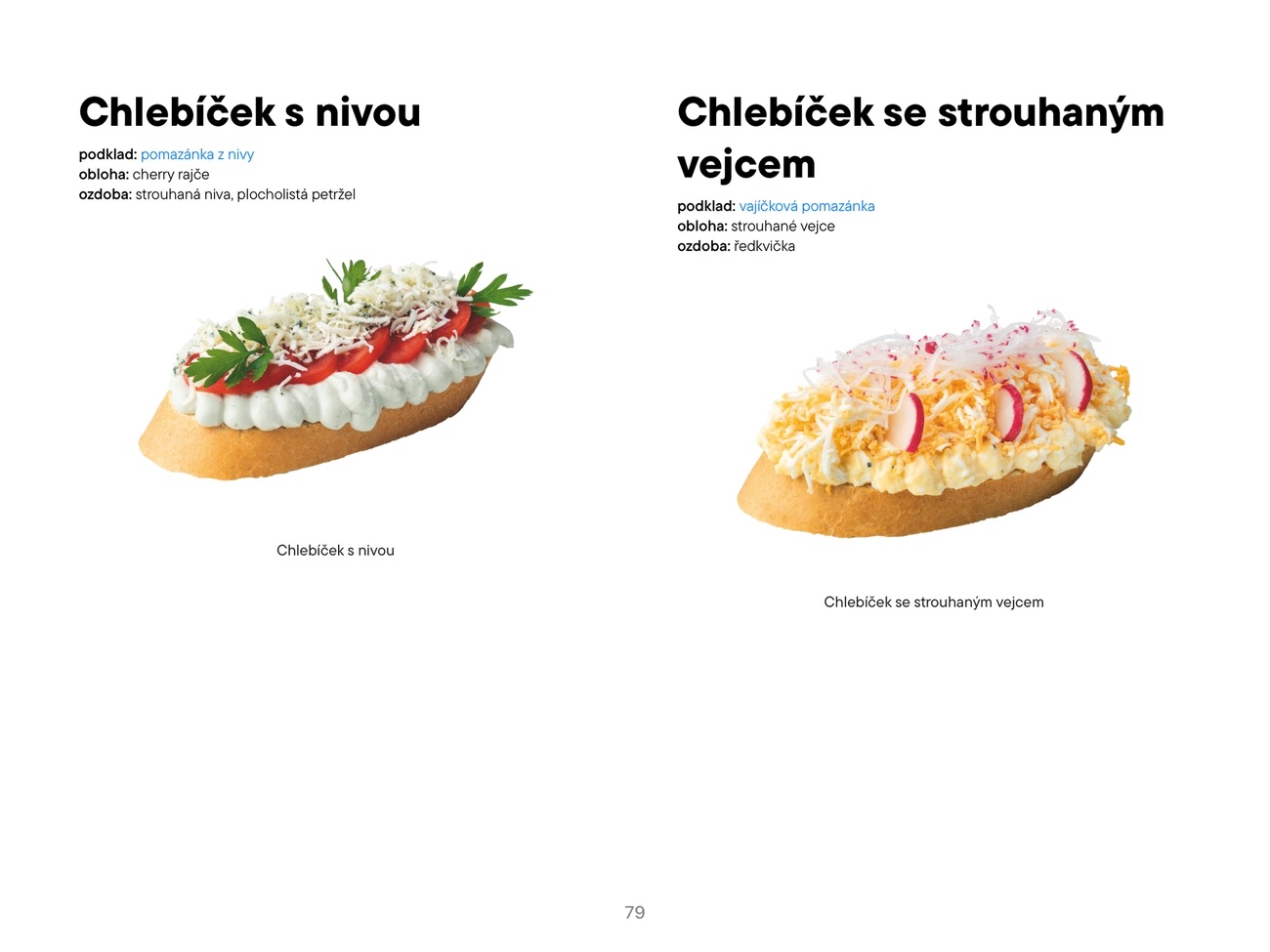 Malá ochutnávka obsahu: Legendy české kuchyně, kterým po generace patří čestné místo na našich svátečních stolech: obložený chlebíček-v hitparádě TOP 16 nejoblíbenějších variant, plněná vejce, šunková rolka v aspiku, hermelínový salát, vajíčková pomazánka, plněné broskve kuřecím, či krevetovým salátem, vaječná tlačenka, bramborový salát v několika skvělých variantách.